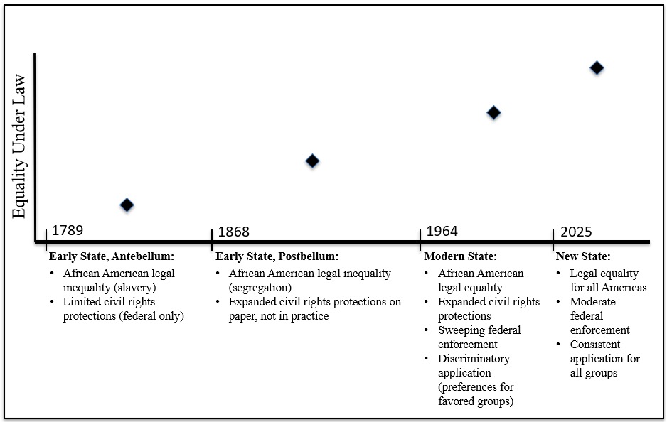 « In doing so, the Administration is laying the foundations for yet another civil rights state, one that will finally dispense with both de jure and de facto discrimination and guarantee equal treatment under law for all Americans.