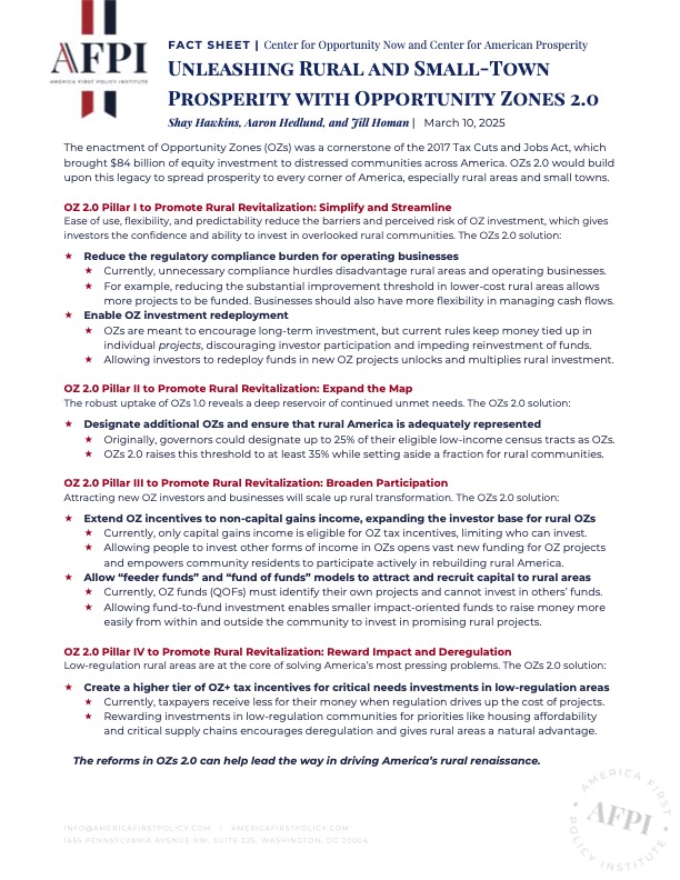 Unleashing Rural and Small-Town Prosperity with Opportunity Zones 2.0