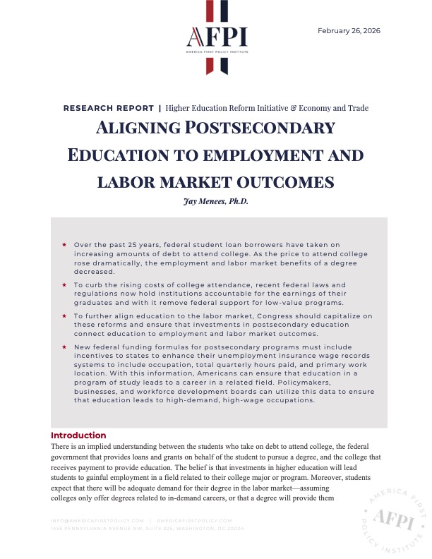 « To further align education to the labor market, Congress should capitalize on these reforms and ensure that investments in postsecondary education connect education to employment and labor market outcomes.