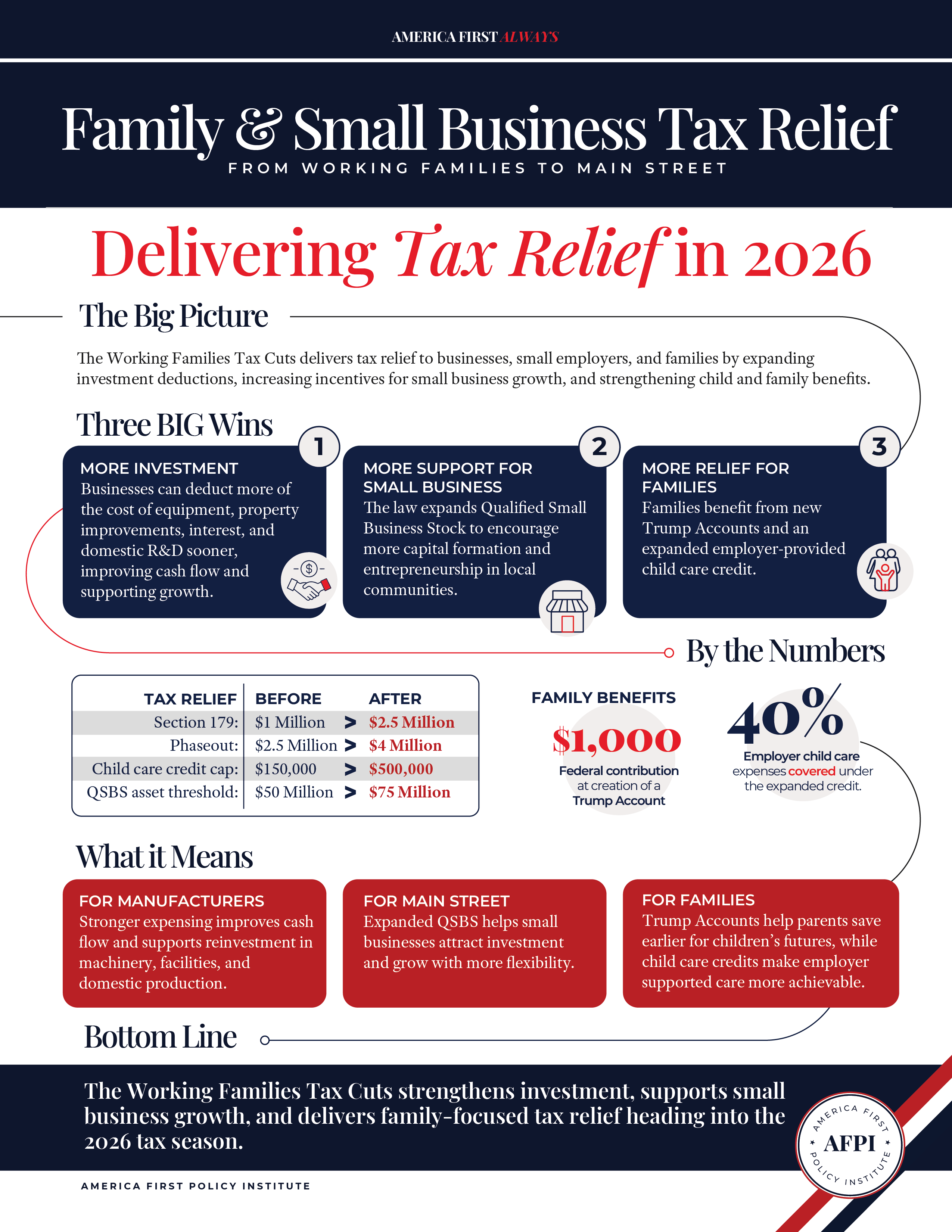 The Working Families Tax Cuts strengthens investment, supports small business growth, and delivers family-focused tax relief heading into the 2026 tax season.