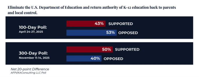 Recent national polling conducted by AFPI shows that in just six months, public support for returning education control from the federal Department of Education to the states has grown by a staggering 20 percentage points.