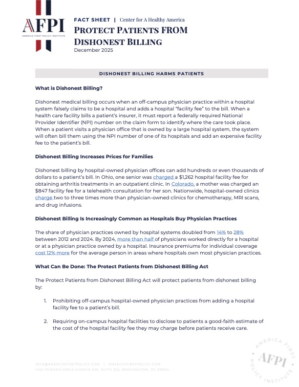 Dishonest billing by hospital-owned physician offices can add hundreds or even thousands of dollars to a patient’s bill. In Ohio, one senior was charged a $1,262 hospital facility fee for obtaining arthritis treatments in an outpatient clinic. In Colorado, a mother was charged an $847 facility fee for a telehealth consultation for her son. Nationwide, hospital-owned clinics charge two to three times more than physician-owned clinics for chemotherapy, MRI scans, and drug infusions.
