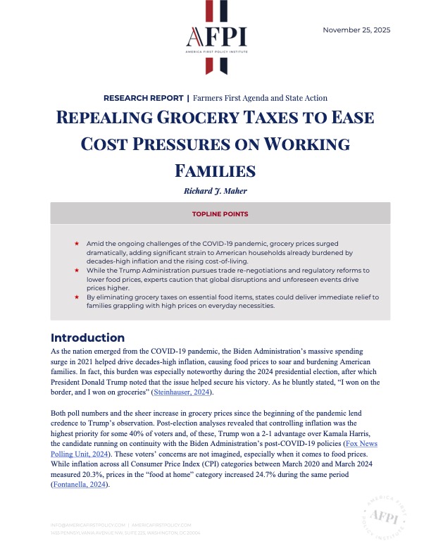 Repealing Grocery Taxes to Ease Cost Pressures on Working Families