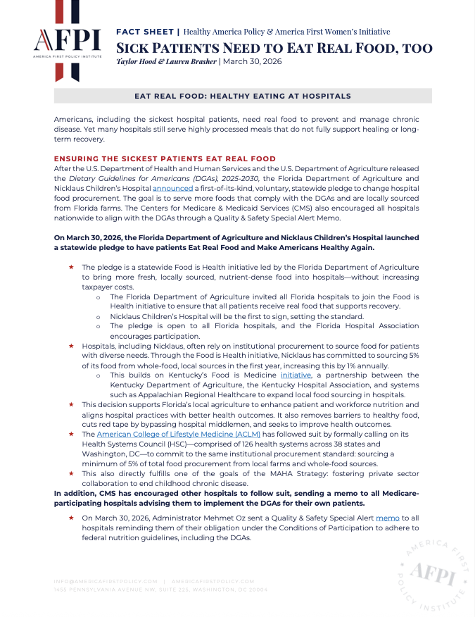 On March 30, 2026, the Florida Department of Agriculture and Nicklaus Children’s Hospital launched a statewide pledge to have patients Eat Real Food and Make Americans Healthy Again.