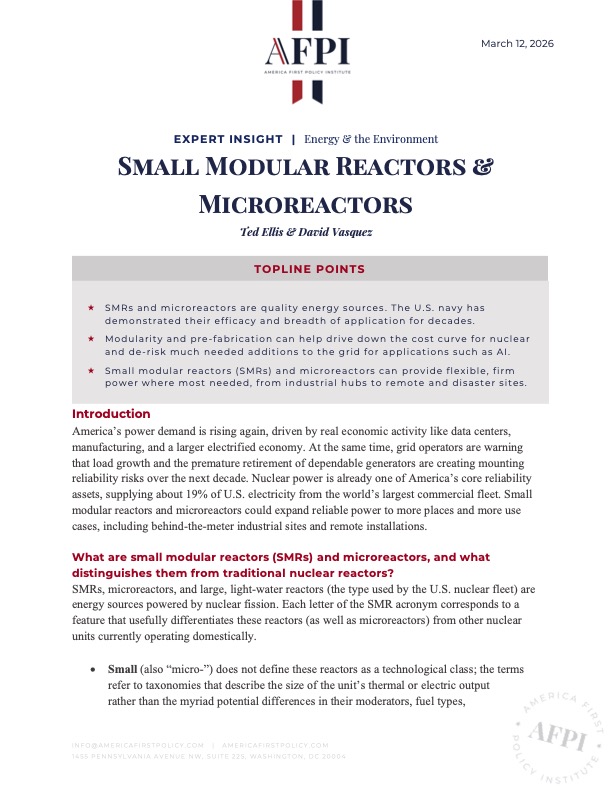 The technology is entering serious testing phases, the demand is already here, and the jobs and exports are tangible. Physics is not what stands in the way—regulations and muscle memory are. If America chooses to unleash them, SMRs and microreactors can pair with life extensions and uprates for the existing fleet, new large reactors where they make economic sense, and leadership that keeps reliable coal and gas plants from being driven off the grid by politics. This will bring the energy dominance agenda to life and create a better reality for workers, for industry, and for families who simply want the lights to stay on and the bills to stay low.