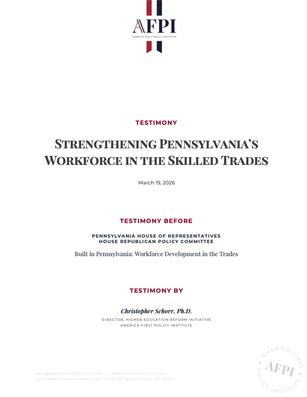 By prioritizing American workers, or more specifically, Pennsylvania’s workers, through targeted, efficient workforce development, Pennsylvania can overcome current hurdles and harness the full potential of its skilled trades sector. AFPI urges the Committee to advance policies that empower individuals, reduce government overreach, and drive economic strength from within the Commonwealth. We stand ready to collaborate on these efforts to build a prosperous Pennsylvania for generations to come.