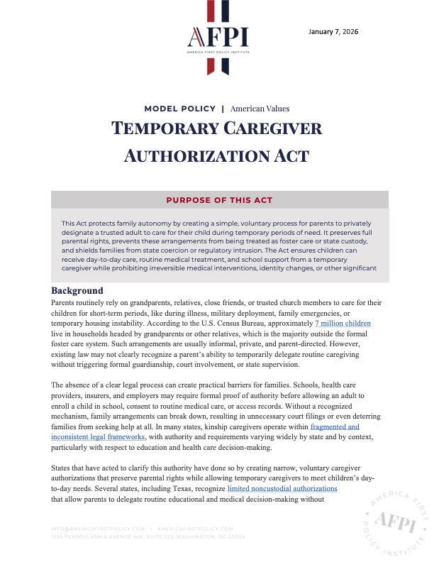 - A simple, voluntary, and revocable authorization process strengthens family autonomy, enables parents to secure temporary care without unnecessary government intrusion, and allows state agencies to focus on cases involving actual danger to a child.