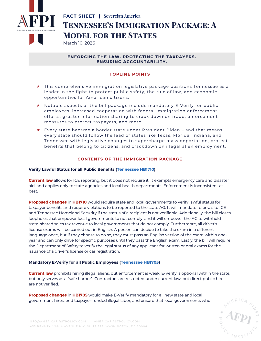 This comprehensive immigration legislative package positions Tennessee as a leader in the fight to protect public safety, the rule of law, and economic opportunities for American citizens.