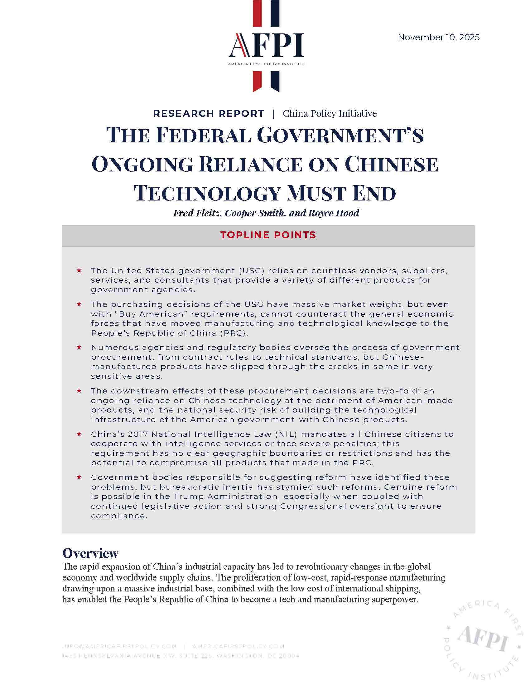 The Federal Government’s Ongoing Reliance on Chinese Technology Must End