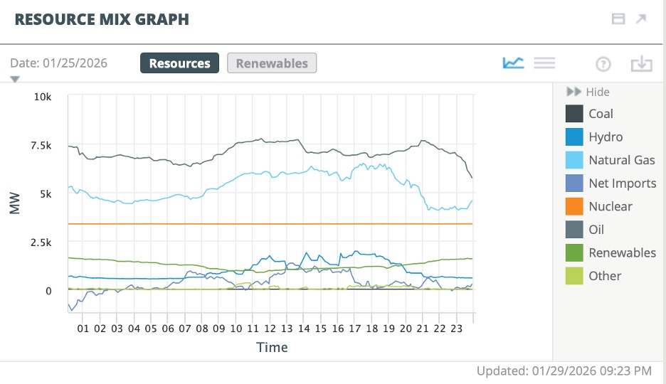 Source: NE ISO Resource Mix Graph for January 25, 2026